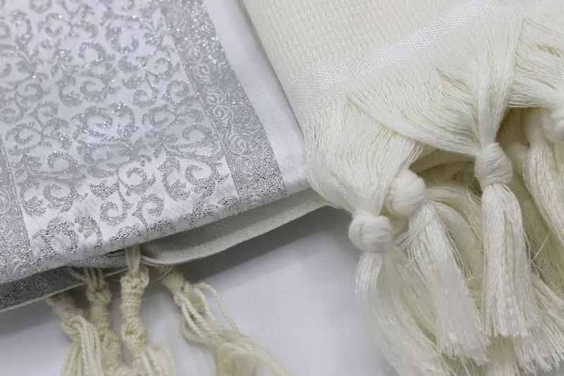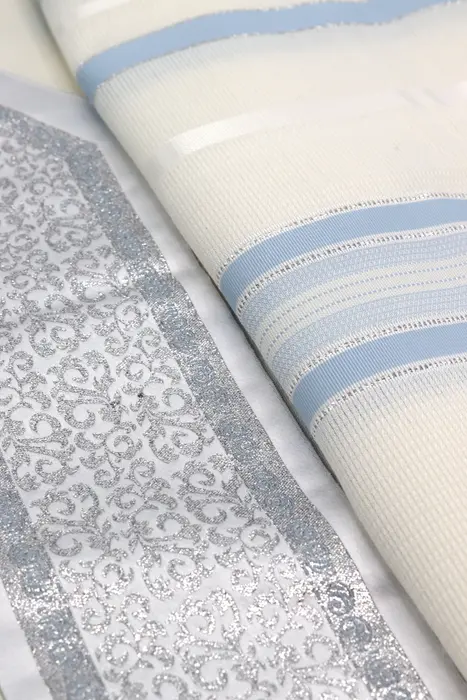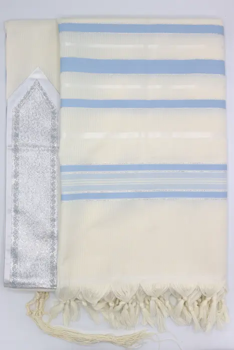 טלית צמר תשבץ - דגם "דותן" תכלת מידה 60