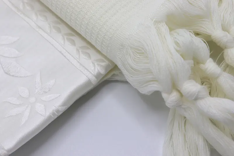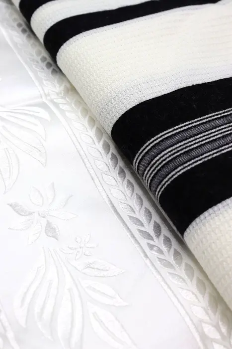 טלית צמר תשבץ - דגם "דותן" שחור מידה 60