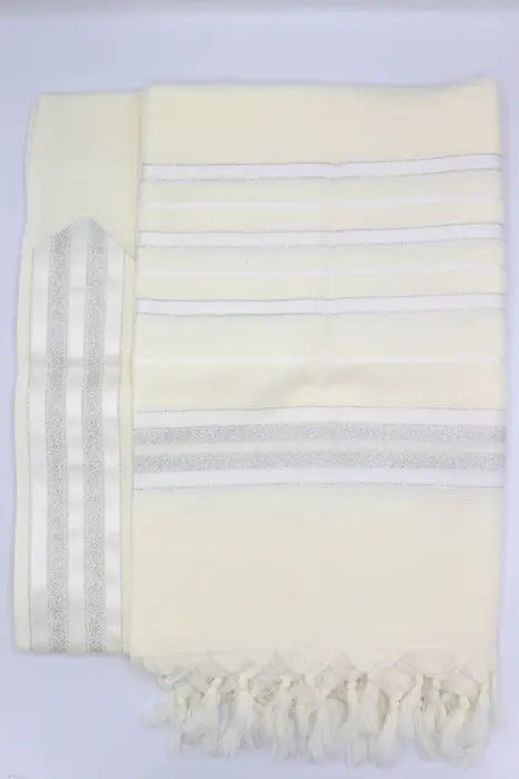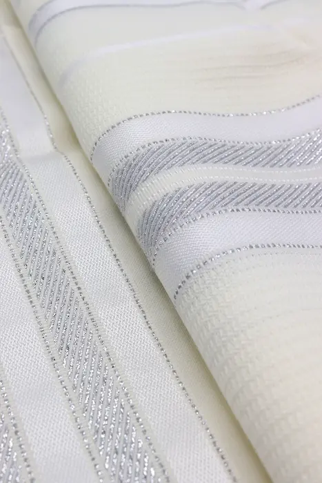 טלית צמר תשבץ פרימיום - דגם "הדר" בצבע כסוף מידה 60