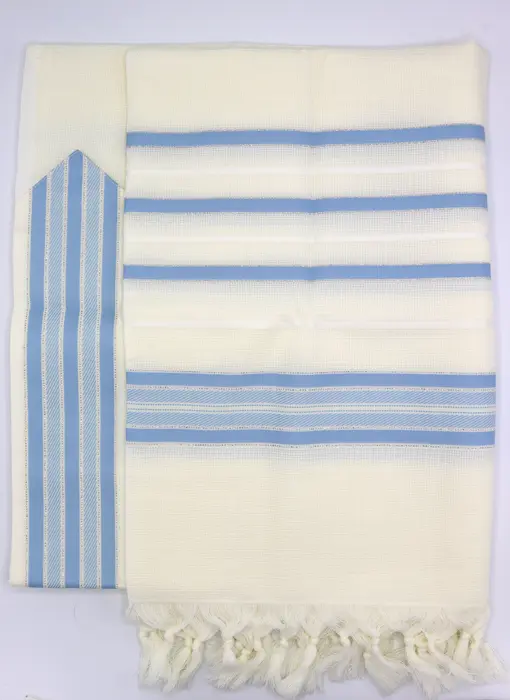 טלית צמר תשבץ פרימיום - דגם "הדר" בצבע תכלת מידה 60
