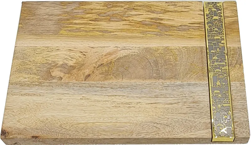 מגש חלה עץ מנגו גדול בשילוב בטון - דגם "הארץ"
