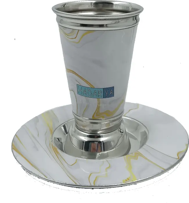 גביע קידוש נירוסטה עם הדפס - דגם "קדש" שיש בהיר