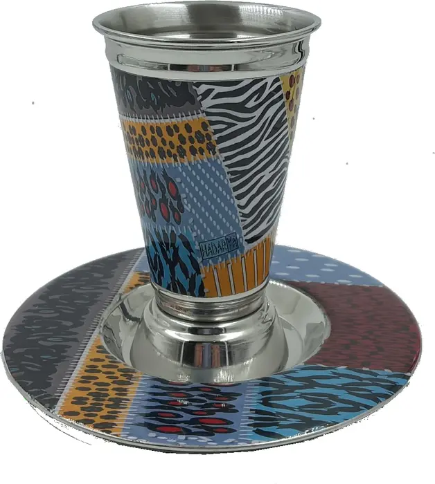 גביע קידוש נירוסטה עם הדפס- דגם "קדש" מקושקש צבעוני