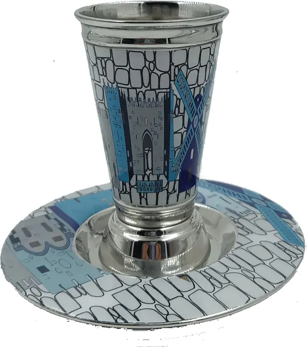 גביע קידוש נירוסטה עם הדפס- דגם "קדש" ירושלים כחול