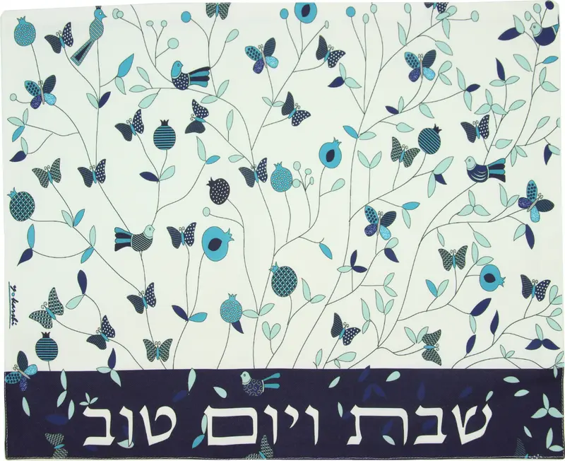 כיסוי חלה הדפסה דיגיטלית - דגם "פריחה" גווני כחול