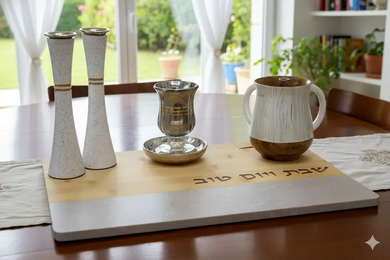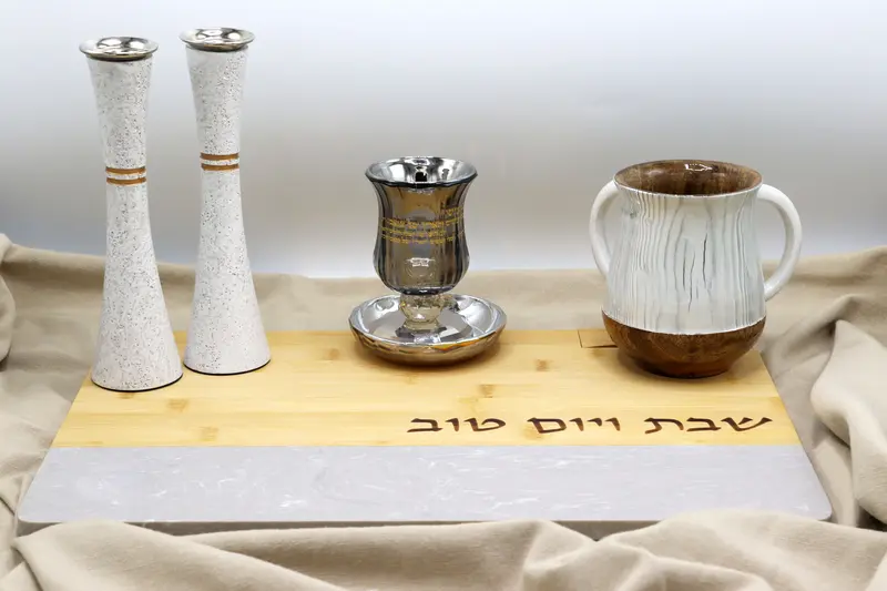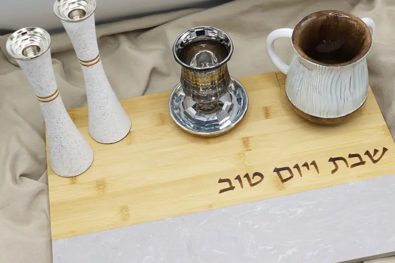 מארז מתנה לחתן וכלה - דגם "שבת קודש" עץ בשילוב גווני אפור מודרני - מתנה מדהימה לזוג נשוי טרי!